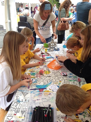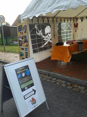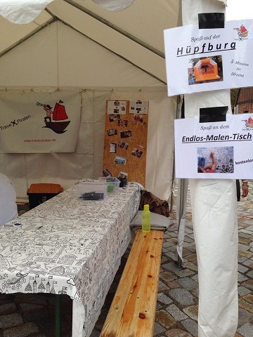 organisierten Grenzfest des Schlutuper Grenzmuseums, sind wir dabei. Bei uns darf auf der Tischdecke gemalt werden.
