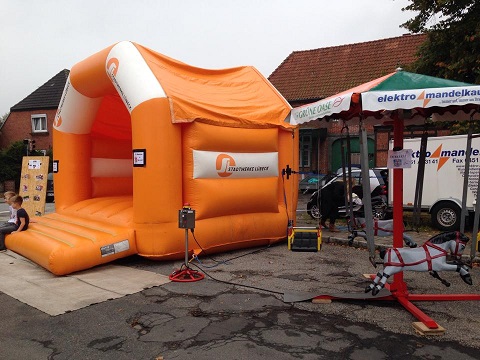 Unsere Fahrt führt uns weiter zum Schlutuper Marktfest. Mit Hüpfburg und Button-Maschine stehen wir den Kindern im Kampf